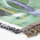 A quality printed throw has its advantages. This is a much finer weave throw than its loopier cousins, and though lighter, it is worth the investment for custom room accessorizing. The back is much prettier than the typical brown, and the fringe on the long sides very vivid, the selvage nicely done. Before photographing, I washed the throw in cold water, delicate, with a thicker woven throw the same size. On tumble dry low, this throw was dry in half the time as the other. This is a very practical quality if you use throws for furniture covers or to wrap up in frequently. The sleekness of the fabric makes it a great layer for accenting or protecting without the feeling of sitting on too much stuff. Perfect for napping or when you feel a light chill coming on. The color printing is beautiful and on this fabric, matched the design and color of my Photoshop image. This is an advantage for blending room fabrics and colors. The fringe on the short sides prints the colors from the design image and therefore varies from the side fringe. I streaked a white fractal line through the plaid pattern to give the illusion of weaving. This printed as crisp as an illusory thread, and put some white in the short side fringe, showing another advantage of print vs loomed- for artistic purposes, line lines, detail, and color integrity can be planned and preserved. My loomed throws have color limitations and more of a needlepoint texture. Print throws reproduce an exact image. The throw felt a little stiff straight out of the package, but this went away in the first delicate wash. Of course I searched the wash water for ink or bleeding and there was none.