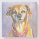 Watercolor painted portrait of a small dog with scarf on neck. © and ® Bigstock® - All Rights Reserved.