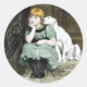 Dog Adoring Girl Victorian Painting Classic Round Sticker