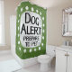 An irreverent and cute typographic animal design that says "Dog Alert, Prepare To Pet". It features black and red text on a white rectangle with funky, playful white dots surrounding it, all on a grey background.