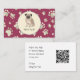 A cute dog grooming business card with dog paw prints on a red background. Add your information on the reverse side of the card. Includes QR code. A whimsical quirky typeface.