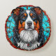 A stunning circular stained glass artwork featuring a detailed dog portrait in vibrant hues of blue, orange, and amber, symbolising beauty and craftsmanship. Perfectly captures artistic allure and pet admiration.