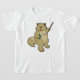 The t-shirt feels and looks great quality, a good thick cotton. It will be a little big for my son, but that means he will be able to wear it and not out grow it too soon. The print was as described on the order when personalised. True size, shape and colour T-shirt- thanks.