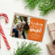 Calling All Dog Lovers! 🐶🎄 Funny and Simple Christmas Photo Card with the Quote 'Barking Spirit Bright' in a Mixed Modern Typography Style Over a ORANGE Background. Add your dog or pet photo or family portrait with your Furry Friend using the template