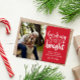 Calling All Dog Lovers! 🐶🎄 Funny and Simple Christmas Photo Card with the Quote 'Barking Spirit Bright' in a Mixed Modern Typography Style Over a Festive Red Background. Add your dog or pet photo or family portrait with your Furry Friend using the template