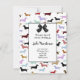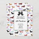 This fun party invitation features colourful little dachshund dogs around the outside. A graphic of a black bow at the top of the invitation makes this extra special. Great for birthday parties!