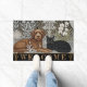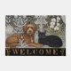 Welcome Doormat featuring brown Dog & Black Cat vintage artwork surrounded by a beautiful thistle, white orchids, pampas grass and exotic winter whites laced in gold of Art Nuovo following in style of William Morris. Fabulous gift for dog / cat owners. Easily customise welcome text. For smaller (resized) version adjustment, please see in my store.
