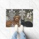 Dog & Black Cat in Floral Art Nuovo Winter / Gold Doormat