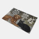 Welcome Doormat featuring brown Dog & Black Cat vintage artwork surrounded by a beautiful thistle, white orchids, pampas grass and exotic winter whites laced in gold of Art Nuovo following in style of William Morris. Fabulous gift for dog / cat owners. Easily customise welcome text. For other sized versions / adjustment, please see in my store.