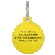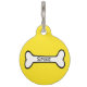 Fun bright dog tag done in sunny yellow, with a white cartoon bone, on the front. Personalise the black text with your dog's information. Great with our matching dog products.
