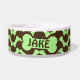 Unique dog bone zigzag bowl for your favourite pet in brown and green with name.