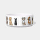 This is a heavy, durable bowl decorated with Tibbies of many colors, the perfect size for hungry/thirsty Tibs. The design is interesting and printing clear.