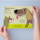 Cute and colourful for your dog care business. Happy dog against yellow background. Add your pet services information.