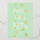 Gold cat and dog paw prints walk over the words "Bring your pets" which can be replaced with your own personalised message. Customise the back of your card to invite furry and non-furry friends to your special occasion.