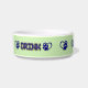 Serve your pet in style with this pet ceramic water bowl. It features some blue paw print hearts and the word "Drink" in navy blue colour, against a sage green background. It's not only stylish but microwave and dishwasher safe too.