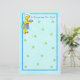 “A surprise for dinner” features the Chef Dog fixing a surprise, a bone wrapped with a candle, ready to serve. Is it for a birthday or just a special surprise? Its up to you! Chef Dog’s expression shows pride while serving the surprise. A bone shaped purple clock hangs on the wall with a rack of pots and pans. Fuchsia wrapping paper leans against the wall and a table holds ribbon and a blue bowl. The background is turquoise with green paw prints and has a yellow border with blue dots.
