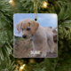 Dog Christmas ornaments with your personalised text and photo - you can add your dog's photo and name. It measures 2.87 inches by 2.87 inches and weights 1.4 ounces. You can find similar design with personalised photo and text on other ornaments too - metal premium square, pewter snowflake or on ceramic ball ornament.