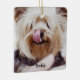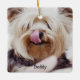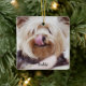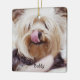 Dog Christmas ornaments (double-sided square ceramic ornament) with customisable text and photo - you can add your dog's photo and name. It measures 2.87 inches by 2.87 inches and weights 1.4 ounces. You can find similar design with personalised photo and text on other ornaments too - ceramic, pewter snowflake or on ceramic ball ornament.