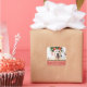 Modern sticker with your favourite photo of your fur baby, "Happy Pawlidays", family name, address in modern serif lettering overlaying festive red background.
