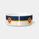 Pet Bowl with a design with the flag of Tulsa, Oklahoma. A beige and navy blue flag with a gold Osage shield containing a red circle and a beige six-pointed star