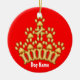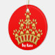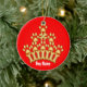 This ornament features an original illustration of a golden crown made of dog bones and paw prints, on a red background on one side, and blue on the other - perfect for including your best friend in the holiday decorations. Personalise it with your dog's name, and change the background colours if you like, to honour your doggie on the Christmas tree or anywhere, anytime to mark his/her spot.