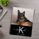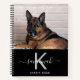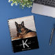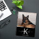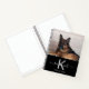A chic black background. Personalise and add your own photo, a name, monogram letter and a text. The name is written in white with a large modern hand lettered style script with swashes. The monogram letter in grey. To keep the swashes only delete the sample name, leave the spaces or emoji's in front and after the name