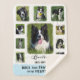 Perfect for celebrating your favourite dog or memorialising your special pooch, this sherpa blanket features 10 custom photos plus your dog's name and more text. Use the easy templates to personalise. Add your pictures and change text lines 1 and 2. The text at the bottom currently says, "Dogs leave paw prints on our hearts." You can keep it or "customise further" to make detailed changes. The colour of the blue bar can also be changed. Choose from small, medium, or large blanket sizes (small is shown). Look no further than this personalised sherpa blanket for the dog lover on your gift list.