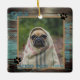 This is a lovely ornament, and great that you personalise the back with details of birthday, weight, etc.. My only tiny disappointment is the "My First" doesn't stand out very well on the background. More than happy with the printing of the photo and the writing on the back.