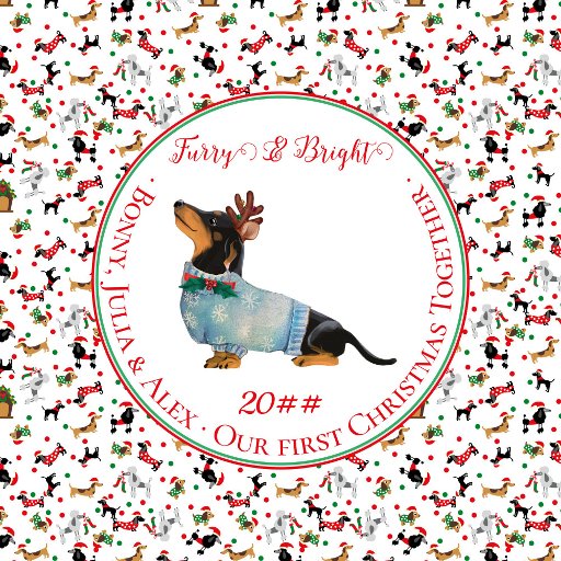 May your Christmas be "Furry & Bright"! The text is displayed in a modern brush script font. Personalise with your names, and put this cute Christmas gift under the tree, one for your dog and the other one for you.