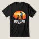 This design showcases a proud dog dad holding a leash attached to a joyful dog, set against a vintage sunset in warm hues. The modern text 'Dog Dad Energy' enhances the retro vibe, making it the perfect choice for dog lovers who appreciate stylish t-shirts.