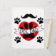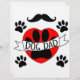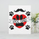 A dog paw print in a red heart with text on a ribbon. Original design with paws and a moustache. A gift idea for men.