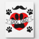 A dog paw print in a red heart with text on a ribbon. Original design with paws and a moustache. A gift idea for men.