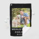 Dog Dad photo golf towel with name. This modern photo golf towel makes a great Father's Day gift. Fun keepsake for the Dog Dad. Replace the photo with your own and change the text from the product page.