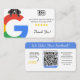 This is a clean minimalist google review business card for Doggie daycares, veterinarians or pet sitters or anyone that has a google business profile and works with canines. On the front side of the card you have the iconic Google G logo with a cute border collie peeking over it. positioned in the bottom left of the card. This logo can be moved to your liking! You also have your logo, a personalised message or call to action to leave you a review on Google. You have an image depicting 5 stars which serves as a cue to let your customers know that a 5 star review is expected. Of course you must deliver on your product quality and service for this to happen. Lastly, there is a thank you message at the bottom. On the back side of the card you have a personal message at the top, simple instructions on what to do, your QR code in the centre and your business information to the right of the code. This card is 100% customisable, you can change the images, the text, the fonts and the colours. You could also just plug in your info and add your logo images and run with it. If you need any help with this template please send me a message and I will gladly assist you. Thanks! Sandy