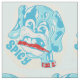 A funny illustration of a blue dog who has bitten into a hot chilli pepper. The text reads spicy.