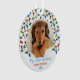 Custom pet photo Christmas ornament for your puppy dog's first christmas, with colourful Christmas lights and editable wording. The photo template is set up for you to add one of your favourite pictures pictures, which will be framed with string light bulbs in red blue green and yellow. The wording currently reads My First Christmas [pets name] 20xx and you can edit this as you wish.