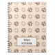 Notebook with very light and dark brown dog's footprints pattern and light brown backdrop. Customisable name.
