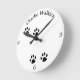 Dog Footprint Clocks___Is it that dog walking time again? This clock is for dog owners with smart dog paw prints with non-retractable claws. Above the paw prints is a template for your own individual dog name.