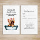 Cute dog groomer watercolor illustration of a happy Yorkshire Terrier (Yorkie) puppy dog in a bathtub. Great for pet groomer who specialises in dog bathing and grooming. Ready to be personalised with your custom information and a space to add the customer's Appointment. Add your Business name, title, address, phone number, email, and website. You can add more information or delete some.