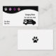Dog grooming business cards with paw prints and mobile grooming van on the front, you can customise this now! Great design and free two sided printing make this an excellent business card for a pet or dog grooming business, mobile vet or pet supplies business.