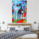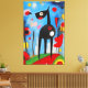 A burst of colours celebrates vitality in this Joan Miró-inspired artwork, featuring a captivating black dog at the centre. A visual ode to the joy and harmony of life.