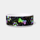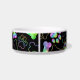 A super cute, ceramic pet dog bowl, making the perfect gift. Ombre, foil rainbow holographic dog bone, paw print design. Customize your pets name and initial by editing the text template.