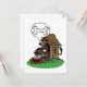 If you like dogs then you are going to love this design of a dog in his dog house dreaming of a bone. The dog is half in half out of the dog house with a bowl of food in front of him. However the dog is dreaming of other things and has a bone in a dream bubble above him. This dog house design looks great on these invitations