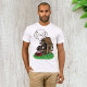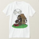 If you like dogs then you are going to love this design of a dog in his dog house dreaming of a bone. The dog is half in half out of the dog house with a bowl of food in front of him. However the dog is dreaming of other things and has a bone in a dream bubble above him. This dog house design looks great on this mens t-shirt. Perfect for yourself or as a gift.
