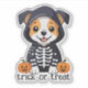 This is a cute Halloween sticker that features a cute pet dog in Halloween costume that looks like skeleton. You can customise the default text "trşck or treat".