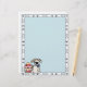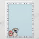 Blue letterhead has dog bone and paw print border with cute dog and fire hydrant.