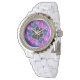 This watch is perfect for dog lovers. The bright background adds a dash of colour to any outfit. A large black paw print adorns the centre of this watch and is set against a diagonal striped background of blue and purple.
