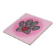 Dog paw print and heart watercolor in red, black and grey. Halftone effect applied to the image. Pink background version. Custom ceramic tiles. Gift idea for dog lovers.