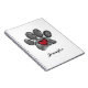 Dog paw print and heart watercolor in red, black and grey. Custom notebooks for men and women. Edit name to personalise. Gift idea for dog lovers.