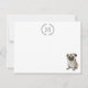 Send your correspondence in style! A playful and cheeky digital illustration of an adorable Pug dog. For dog lovers wanting fancy and elegant yet cheeky notecard stationery to send to family and friends. Personalize with your monogram within a vintage floral wreath. Easily change the font style and color using the online template tools. Unique personalized stationery set that makes a wonderful gift. All art ©Marisu Valencia